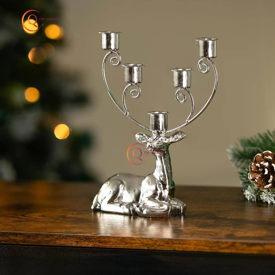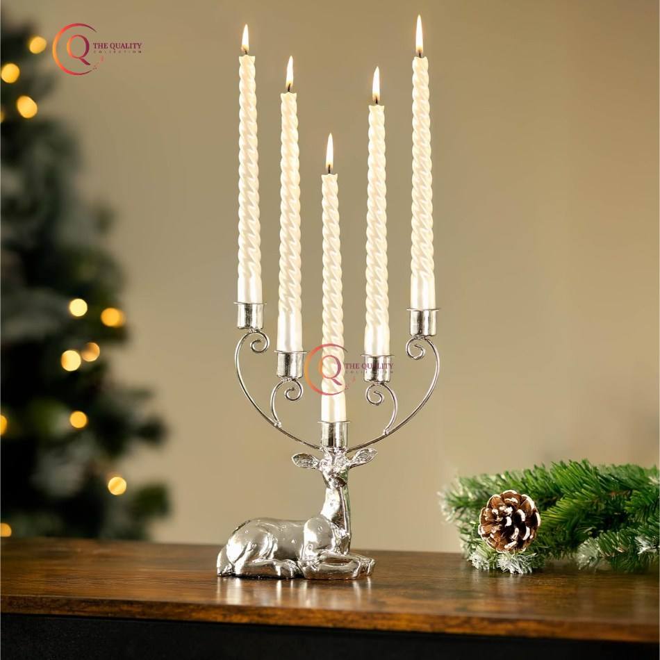 โถเทียนทำจากอลูมิเนียมเคลือบเงาสีเงินพร้อมแขน5ชิ้นทำด้วยมือไม่เหมือนใครดีไซน์รูปกวางโลหะสำหรับตกแต่งเทศกาลคริสต์มาส