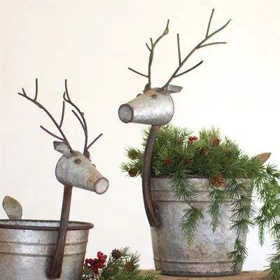 ถังโลหะคริสต์มาสสำหรับตกแต่งบ้านตามเทศกาลพร้อมดีไซน์แบบชนบทเหมาะสำหรับเป็นของขวัญเครื่องประดับลูกสน