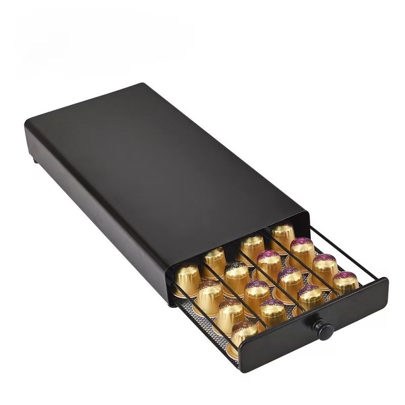 ลิ้นชักเก็บแคปซูลกาแฟโลหะ ความจุ 40 แคปซูล สำหรับเนสเพรสโซ พร้อมที่กันลื่นสำหรับจัดระเบียบเคาน์เตอร์ เหมาะสำหรับบ้าน ห้องครัว สำนักงาน ห้องเก็บของ