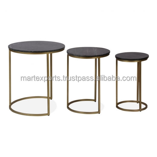 ชุดโต๊ะกาแฟเหล็กเคลือบผงหินอ่อนสำหรับรับประทานอาหารกลางแจ้งทางเข้าวิลล่า