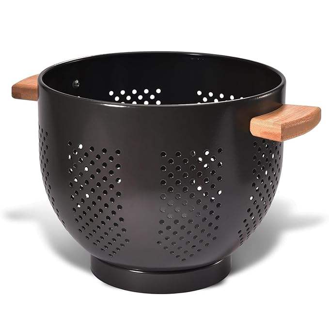 กระชอนโลหะพร้อมด้ามไม้ เคลือบสีฝุ่น อุปกรณ์ครัวที่จำเป็น ขนาด 22 ซม. กระชอนโลหะขนาดใหญ่พร้อมฐานที่มั่นคง