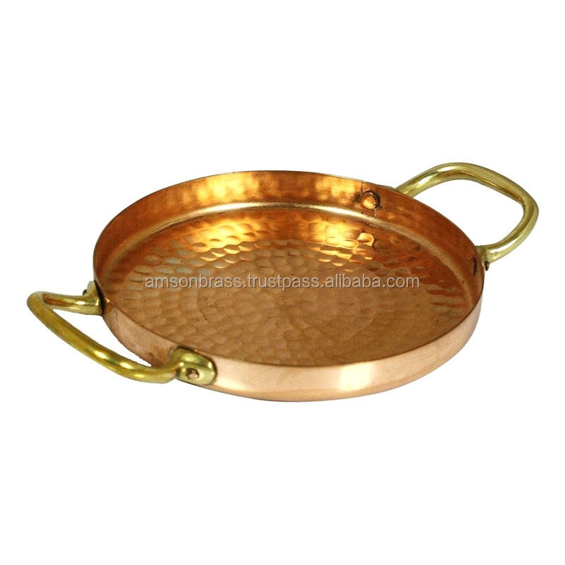 ถาดเสิร์ฟผลไม้ทองแดงตกแต่งโต๊ะทำจากโลหะทองแดงทรงกลมแบบดั้งเดิมพร้อมที่จับ