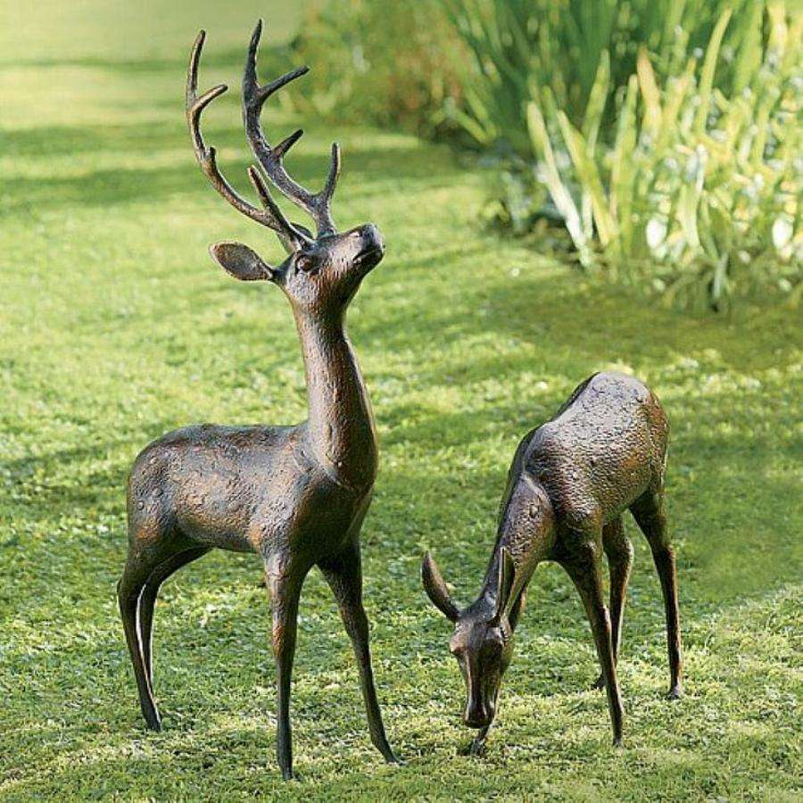 ชุดรูปปั้นกวางเรนเดียร์โบราณสำหรับตกแต่งงานฝีมือโลหะ2ชิ้น