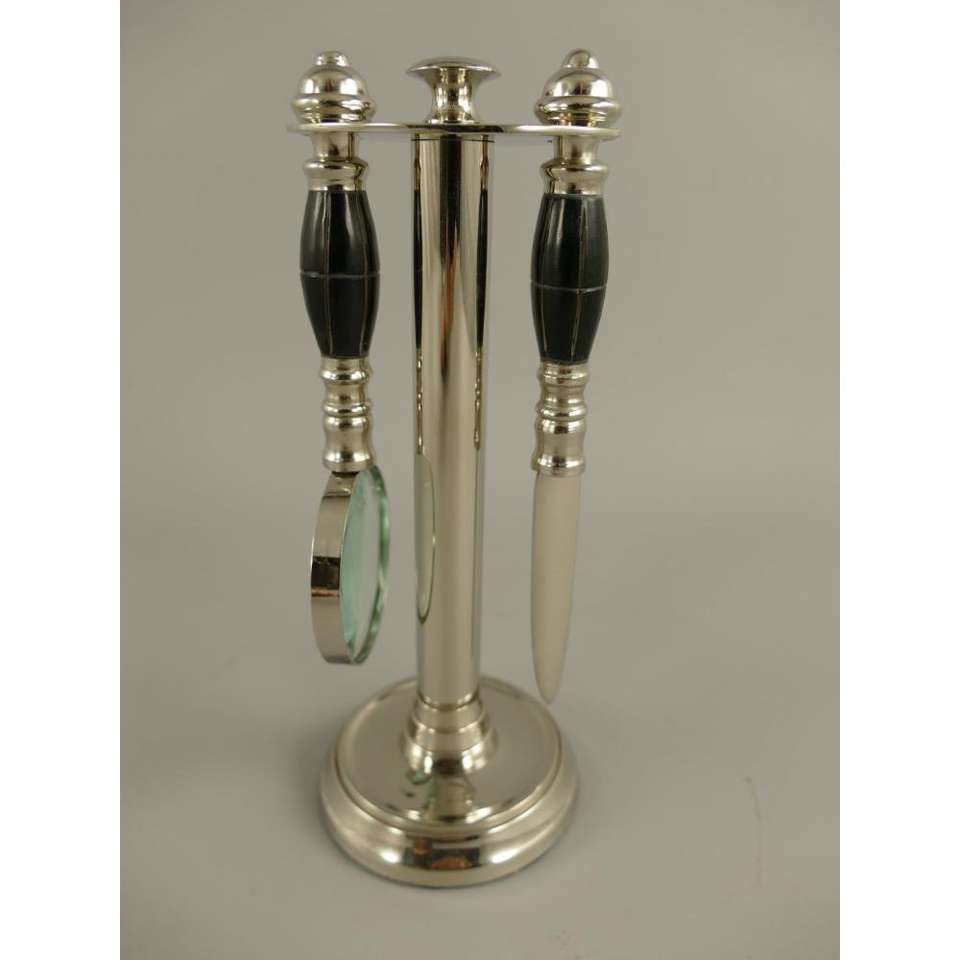 แว่นขยายโลหะตกแต่งพร้อมที่เปิดจดหมายและขาตั้ง อุปกรณ์สำนักงาน ของตกแต่งบนโต๊ะ