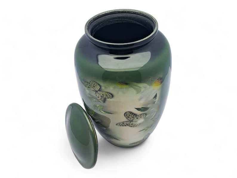 โกศรูปผีเสื้อโลหะสำหรับใส่เถ้ากระดูกสัตว์เลี้ยง งานฝีมือรักษ์โลก ขนาดใหญ่ 10 นิ้ว บรรจุได้ถึง 200 ปอนด์