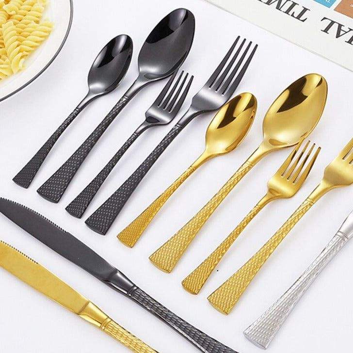ชุดช้อนส้อมโลหะลายต่างๆ เหมาะสำหรับการรับประทานอาหารแบบสบายๆ ในครัว บ้าน ครอบครัว ร้านอาหาร คาเฟ่ และมื้ออาหารต่างๆ