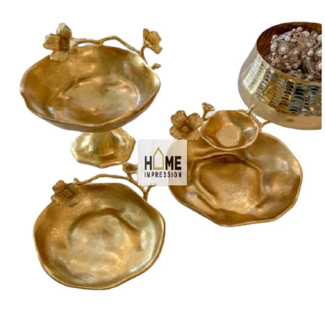 ชามโลหะตกแต่งหรูหราดีไซน์เนอร์โบราณชามใส่เหรียญสีทองเงาวาววาวดีไซน์เนอร์ดูน่าดึงดูด