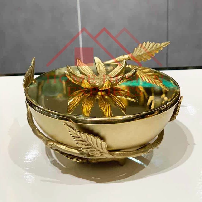 โลหะตกแต่งรอบชามที่มีใบยืน