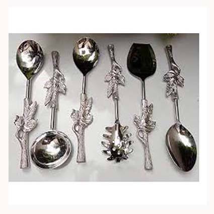 เซิร์ฟเวอร์สลัดตกแต่งโลหะ,ชุดเสิร์ฟบนโต๊ะอาหารจับสี่เหลี่ยมยาวสีเงินเซิร์ฟเวอร์สลัดสแตนเลส