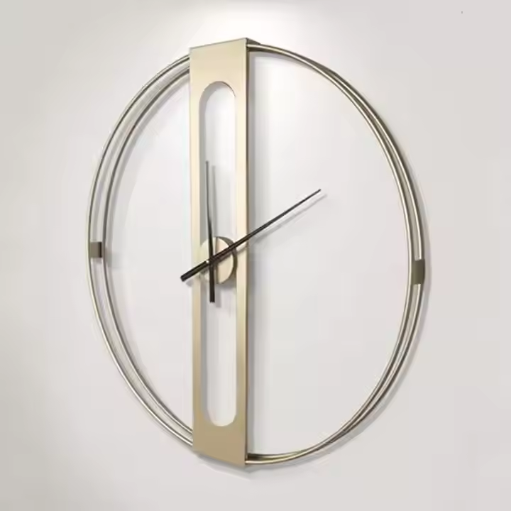 นาฬิกาติดผนังตกแต่งทำจากโลหะควอทซ์โมทีตีรีโกลด์ซาลูนสำหรับห้องนั่งเล่นการตกแต่งผนังแบบเรียบง่ายโดยอุตสาหกรรม Azora