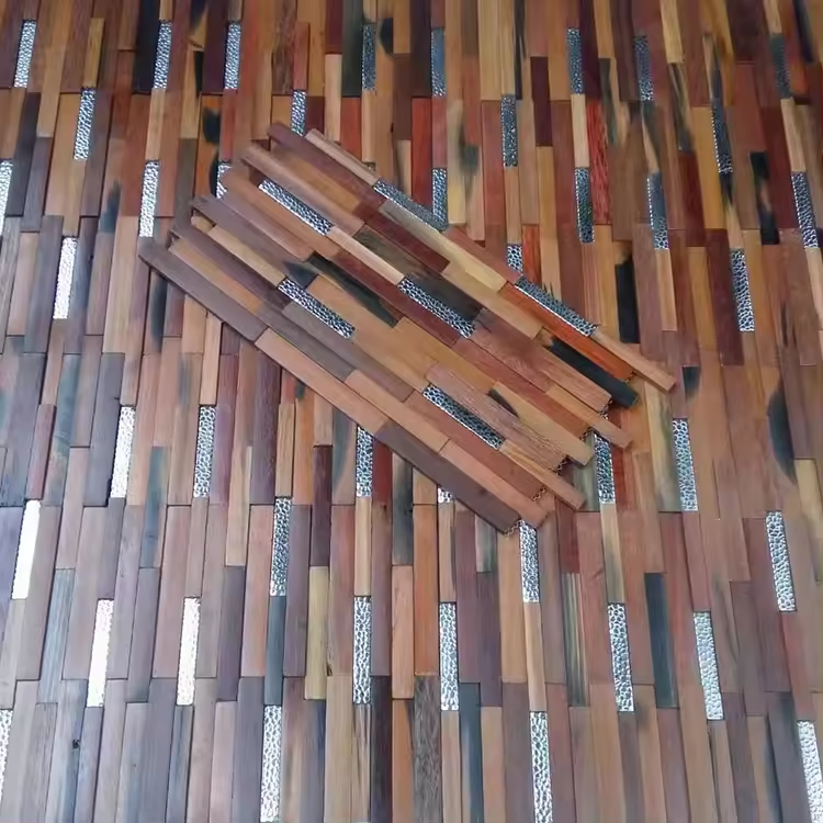 แผงไม้3D แบบมี3D แผงไม้สำหรับตกแต่งภายในบ้านดีไซน์โลหะ