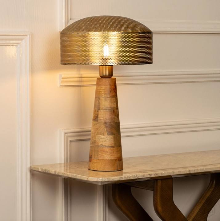 โคมไฟตั้งโต๊ะทรงโดมโลหะพร้อมฐานไม้ | โคมไฟตั้งโต๊ะตกแต่งสไตล์บ้านไร่ | ไฟบ้านหรูหราที่เป็นมิตรกับสิ่งแวดล้อม ใช้พลังงานไฟฟ้ากระแสตรงแบบยืดหยุ่น