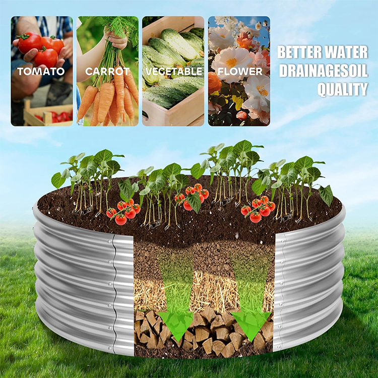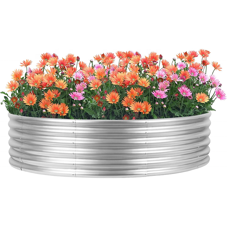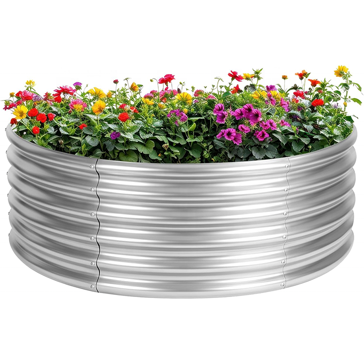 เตียงยกสูงทำจากเหล็กชุบสังกะสีทรงกลมกล่องปลูกต้นไม้กลางแจ้งสำหรับปลูกผักทำสวน