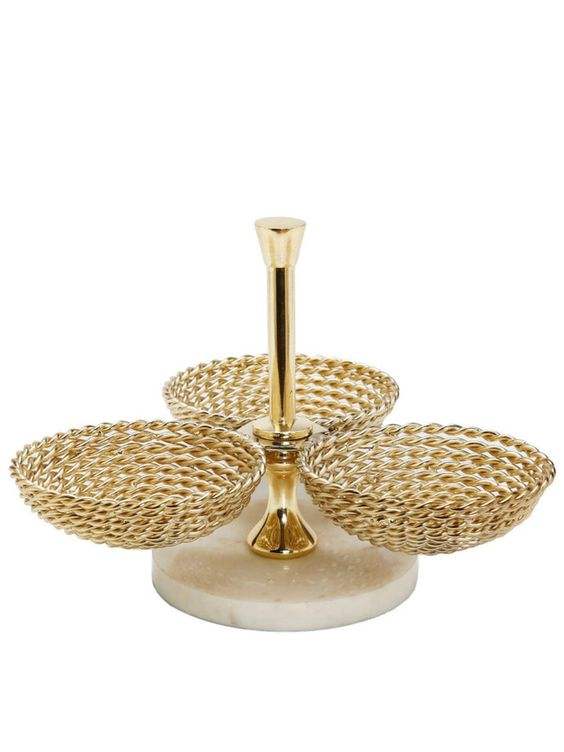 ชุดชามอาหารตั้งโต๊ะ3ชิ้นทำจากโลหะหรูหราสำหรับตกแต่งบ้าน