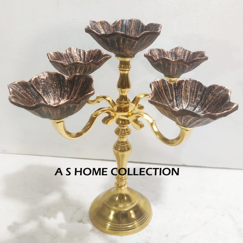 โลหะห้าชามในอลูมิเนียมยืนสีทองสำหรับโต๊ะและอุปกรณ์เครื่องครัวสำหรับรูปทรงที่หรูหรา