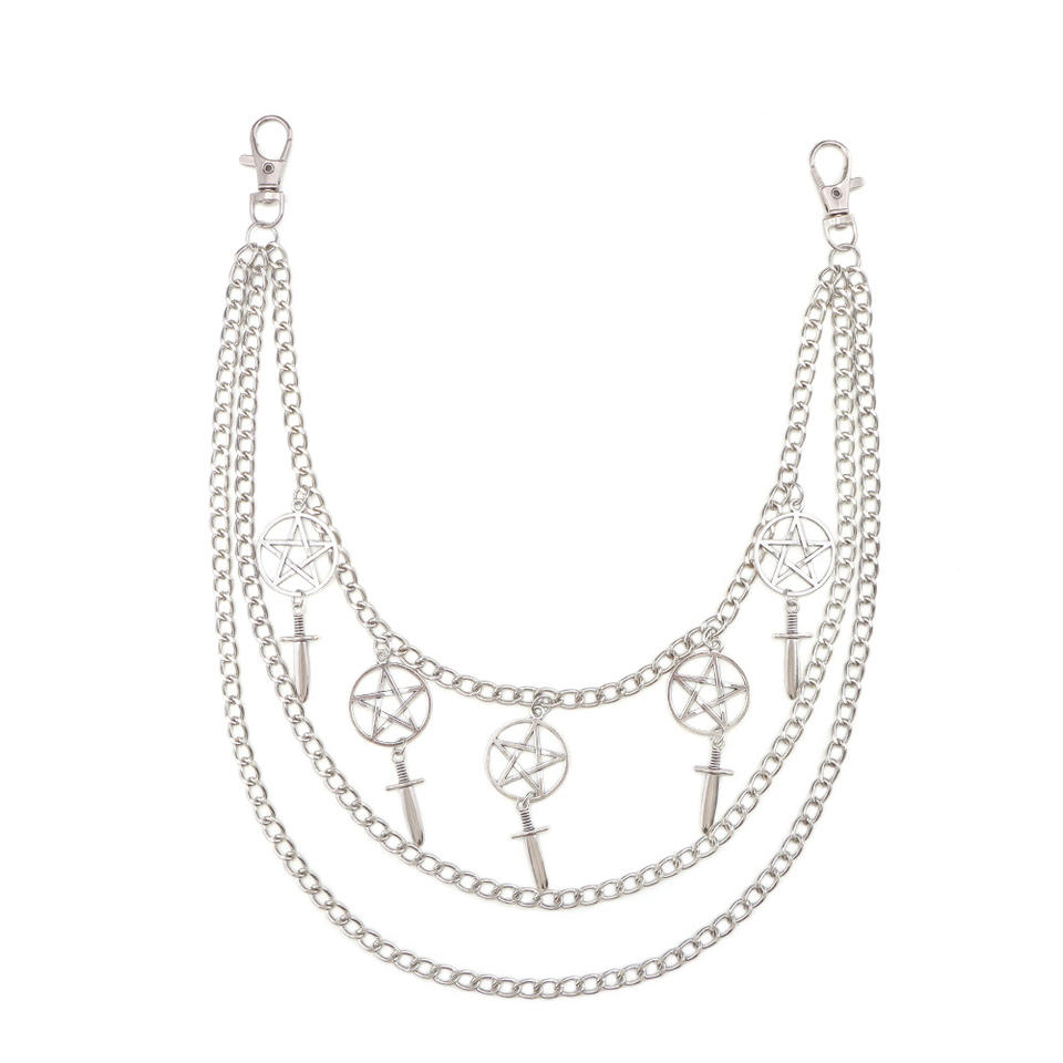 โซ่คาดเอวโลหะรูปดาวห้าแฉกแบบหลายชั้น สำหรับทุกเพศ สวมใส่ได้ทุกวัน ทำจากโลหะผสมสังกะสี แฟชั่นเครื่องประดับร่างกาย
