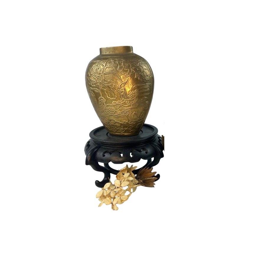 แจกันดอกไม้โลหะสำหรับตกแต่งโต๊ะสำหรับเทศกาลตกแต่งบ้านด้วยทองเหลืองโบราณสำเร็จรูปและพื้นผิวการออกแบบเสร็จ