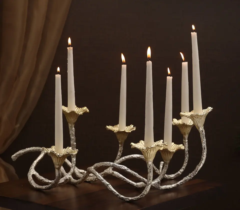 เชิงเทียนทำจากแก้วรูปทรงดอกไม้ทำจากอลูมิเนียมสำหรับตกแต่งบ้านพร้อมชุบนิกเกิลด้านสำหรับคริสต์มาส