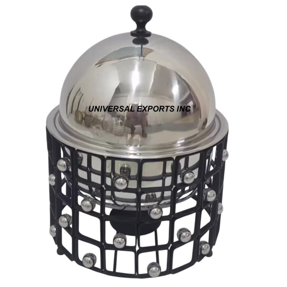 หม้ออุ่นอาหารโลหะพร้อมขาตั้งรูปทรงกลม