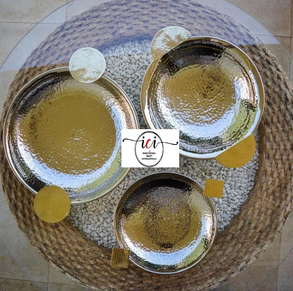 ถาดเสิร์ฟอาหารและช็อกโกแลตโลหะ ถาดเสิร์ฟอาหารยอดนิยม ภาชนะใส่อาหารสำหรับใช้ในบ้านและครัว จากอินเดีย
