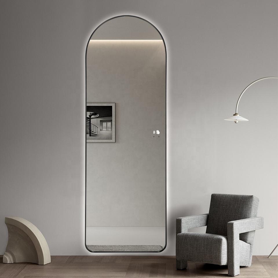 Metal Frame Arch Corner Wall Led Hair Salon Mirrors Wall Mounted Full Length Led Backlit Light Mirror