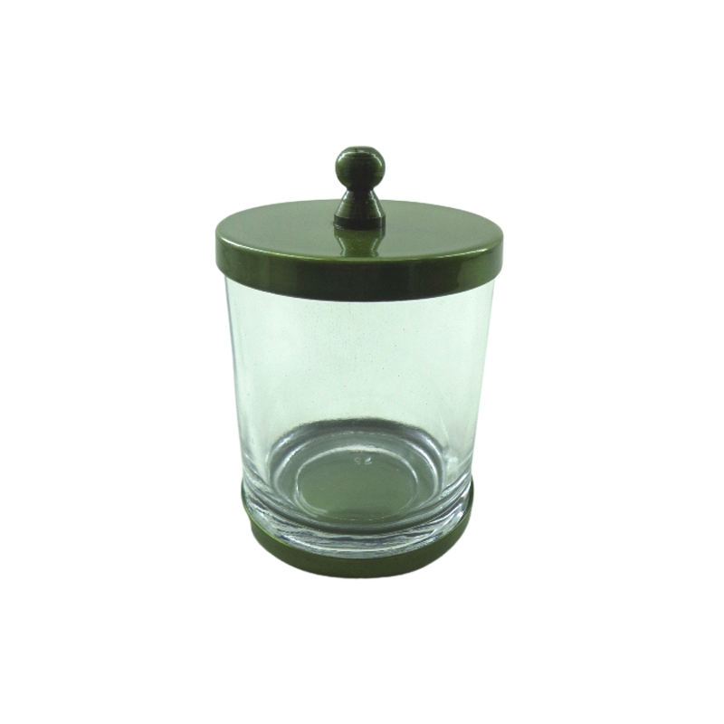 โถเทียนเคลือบผงใสสำหรับตกแต่งบ้านและบนโต๊ะโถเทียนโลหะและแก้วพร้อมฝาปิดทำด้วยมือ