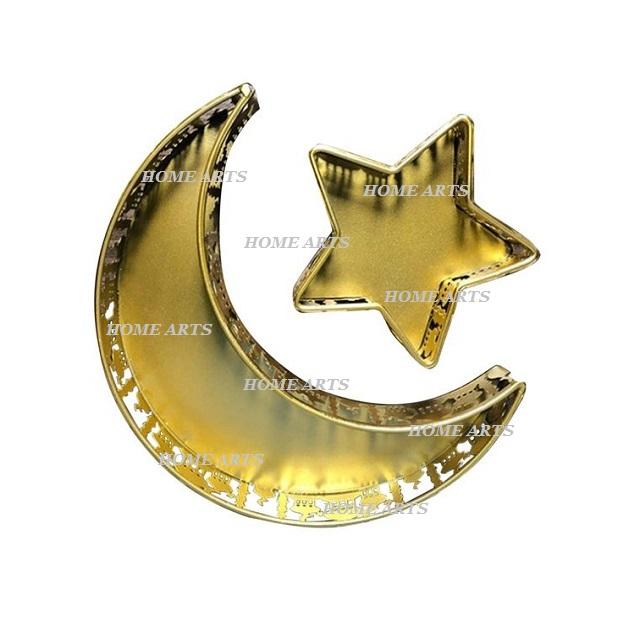 ถาดขนมช็อคโกแลตรูปดวงจันทร์และดาวถาดเสิร์ฟขนมวันสีทองทำจากโลหะ