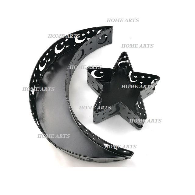 ถาดเสิร์ฟขนมรอมฎอนสีทองถาดเสิร์ฟอาหารอิสลามรูปทรงดวงจันทร์และดาวทำด้วยมือ