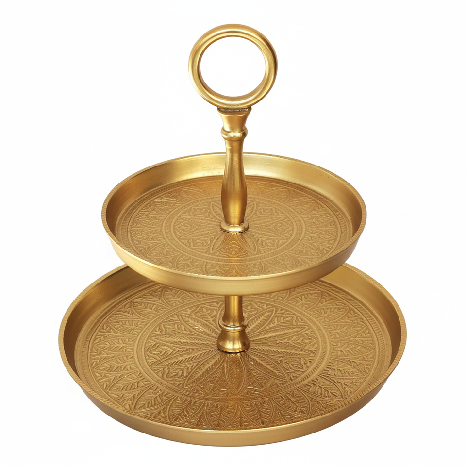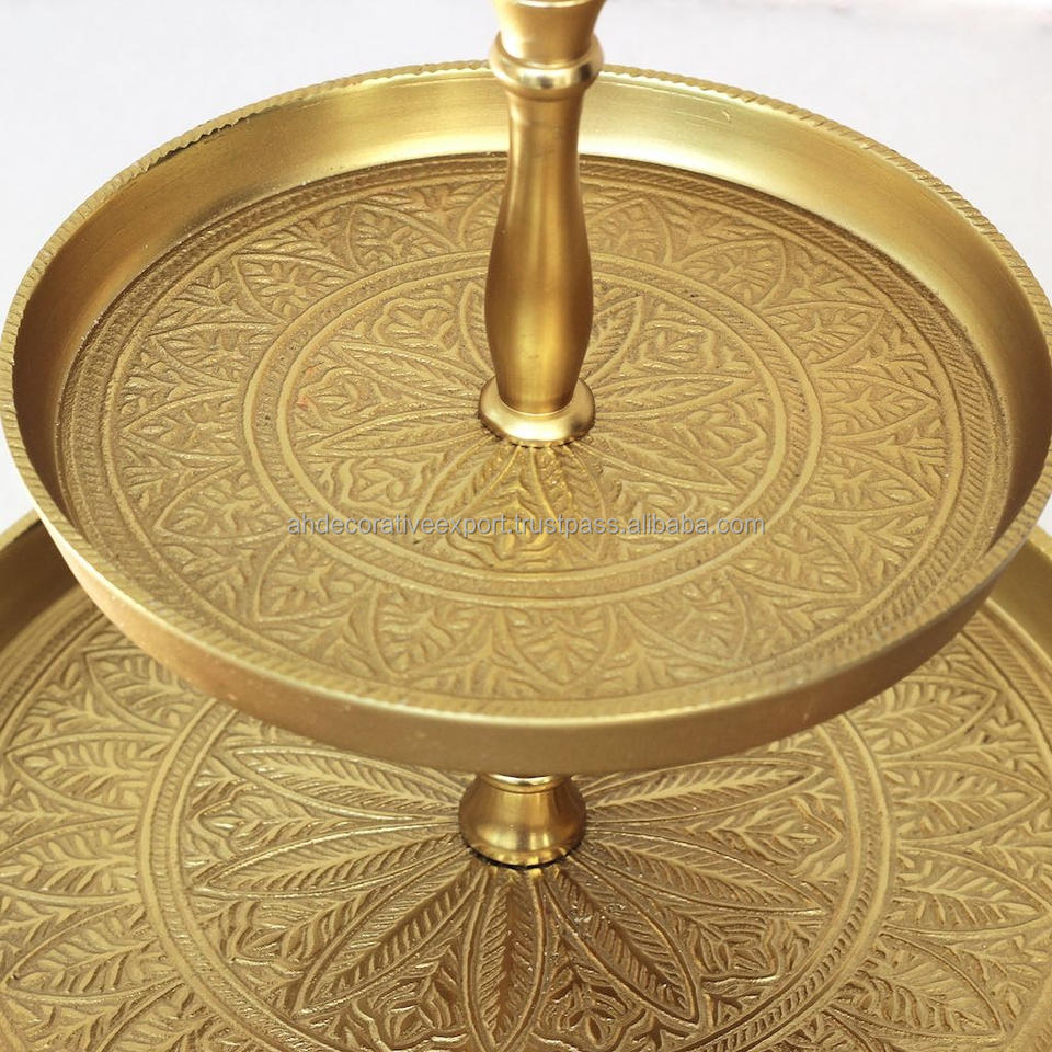 ถาดเสิร์ฟเค้กโลหะชุบทอง2ชั้นดีไซน์หรูใหม่พร้อมอุปกรณ์ทำเค้กโลหะแบบนูนดีไซน์สุดหรู