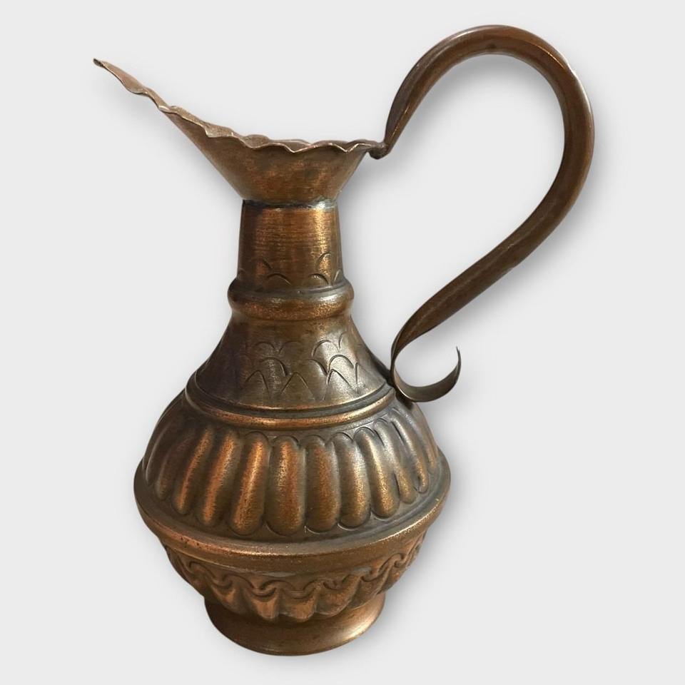 เหยือกน้ำทองเหลืองแท้ ดีไซน์หรูหรา ชุบทอง ผิวสัมผัสแบบสั่งทำพิเศษ พร้อมหูจับ