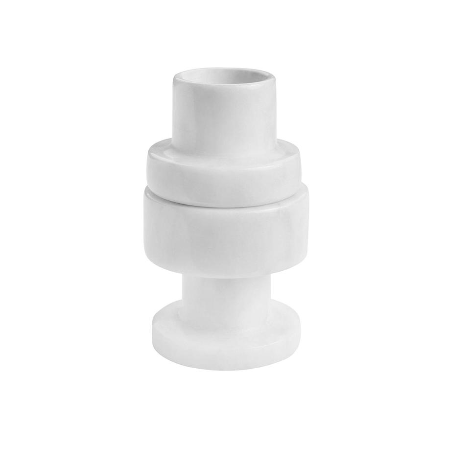 ชุดเชิงเทียนโลหะสีทองขัดเงา พร้อมฐานหินอ่อนสีขาว ของตกแต่งบ้านสุดหรูสำหรับวางบนโต๊ะ
