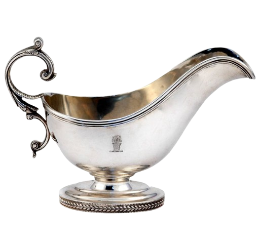 ซอสน้ำเกรวี่โลหะเรือเคลือบสีเงินมันวาวจานเสิร์ฟนิกเกิลตกแต่งตามสั่ง