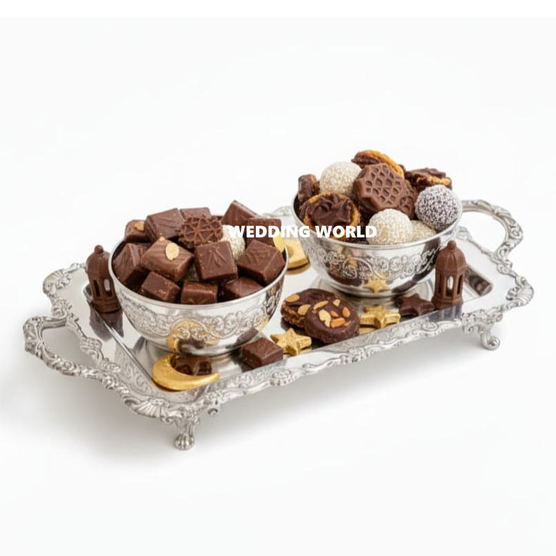ชามช็อกโกแลตโลหะลายตอกพร้อมลายต้นปาล์ม สินค้ามาแรง ขายดี ชามช็อกโกแลตรอมฎอน สำหรับซาอุดีอาระเบีย คูเวต กาตาร์