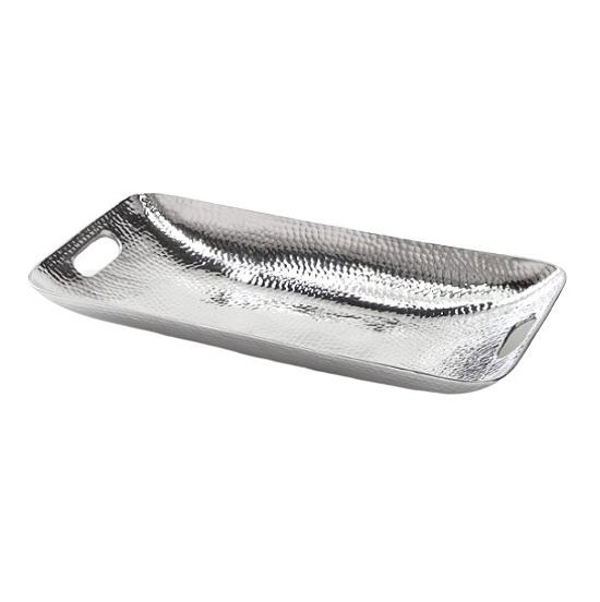 ถาดเสิร์ฟโลหะแบบตอกทำด้วยมือถาดเสิร์ฟโลหะแบบคลาสสิกถาดเสิร์ฟแบบใหม่สำหรับนักออกแบบโต๊ะชุบนิกเกิล
