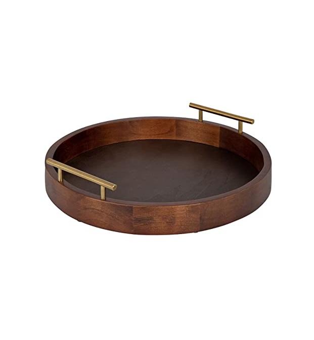 ถาดไม้เสิร์ฟอาหารด้ามโลหะถาดไม้ดีไซน์ตามสั่งสำหรับใช้ในบ้านโรงแรมและร้านอาหาร