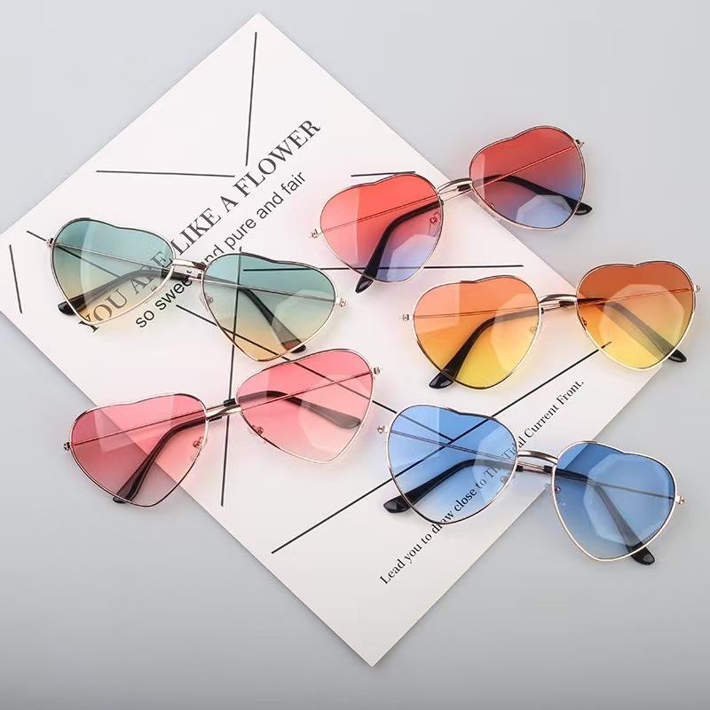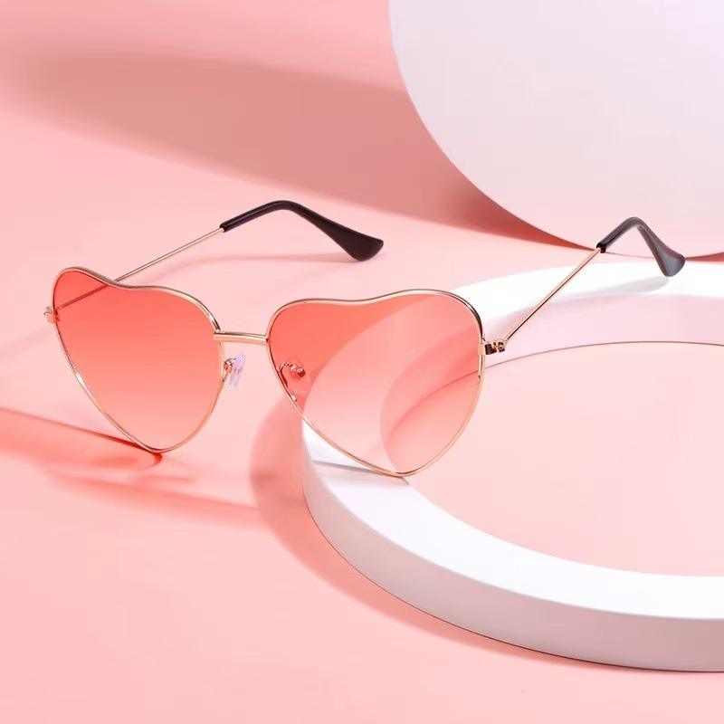 Metal Heart Sunglasses Rose Gold Frame Ac Lens Unisex UV375 Protection Class 2 Sunshades