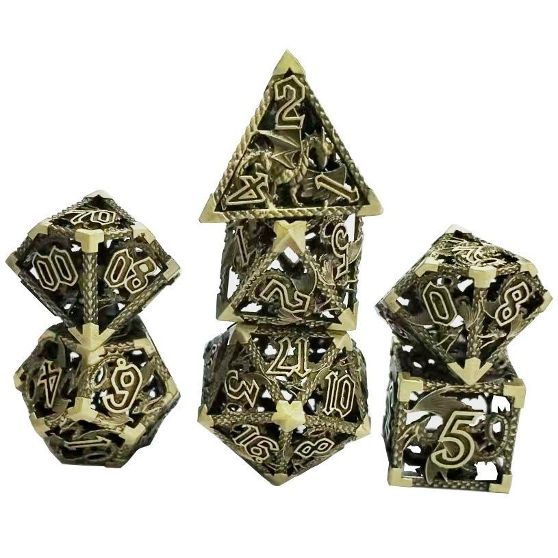 ชุดลูกเต๋ามังกรโลหะกลวงชุดลูกเต๋ามังกร DND และดันเจี้ยนอุปกรณ์เสริมเกมกระดาน TRPG อุปกรณ์เสริมสำหรับเกมกระดาน7ลูกเต๋า