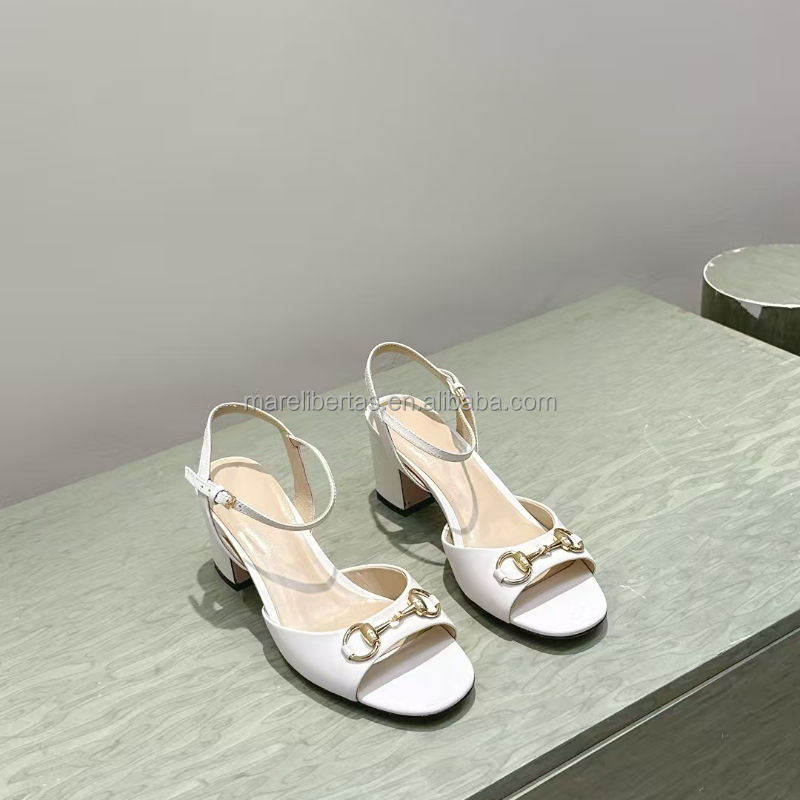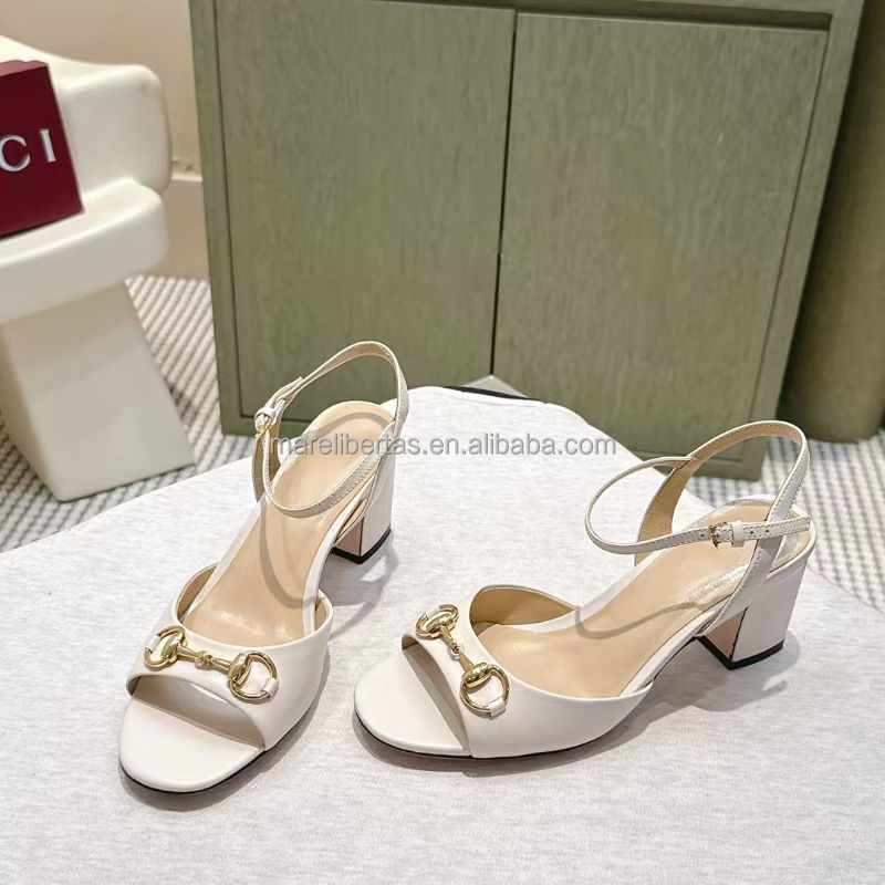 รองเท้าส้นสูงหัวเหลี่ยมแบบมีห่วงโลหะ บุหนังแกะ เนื้อผ้าคุณภาพสูง สไตล์เรโทร หรูหรา พรีเมียม เหมาะสำหรับใส่เดินทางและใช้ในชีวิตประจำวัน