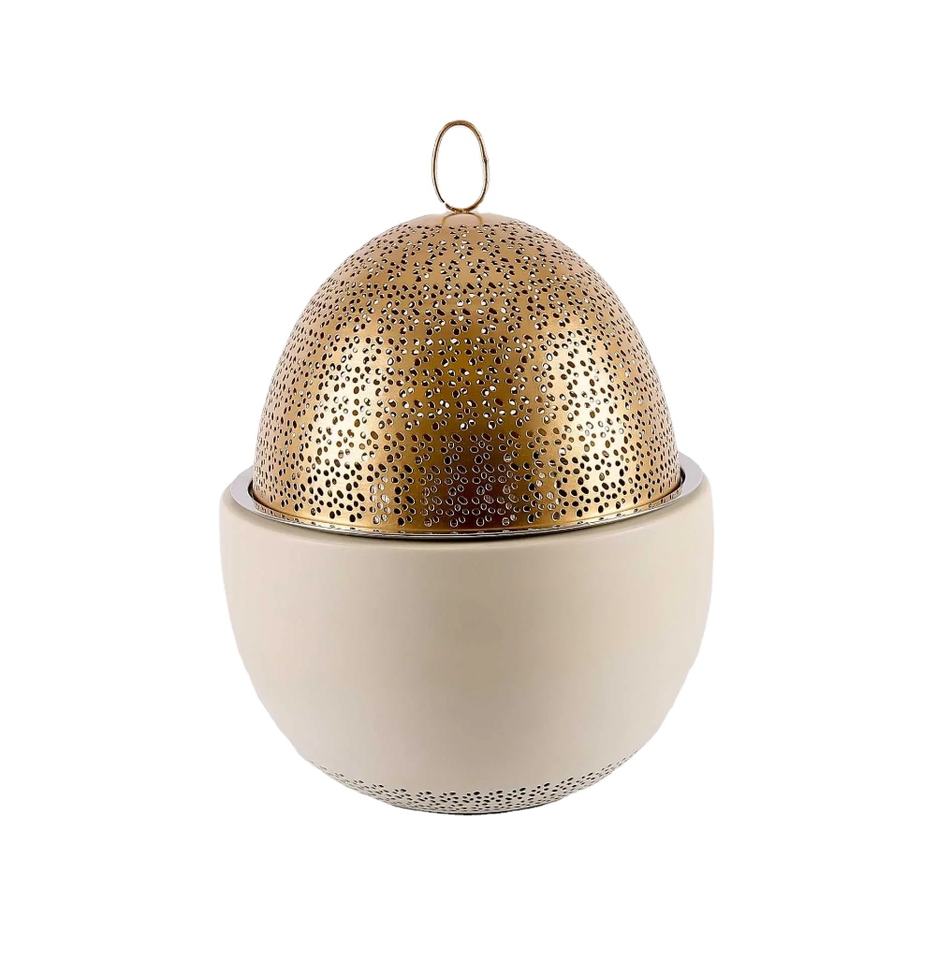 หม้อไฟโลหะหม้อทรงกลมโต๊ะครัวเสิร์ฟทองพร้อมขาตั้งหม้อคุณภาพดีที่สุดทําด้วยมือการออกแบบที่หรูหรา