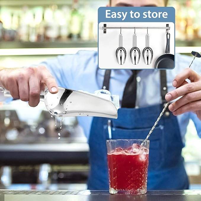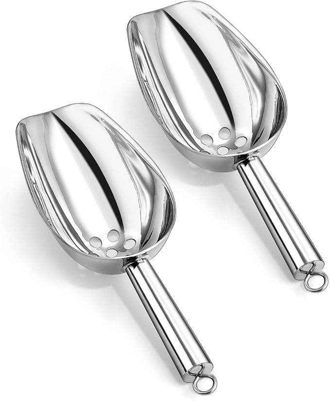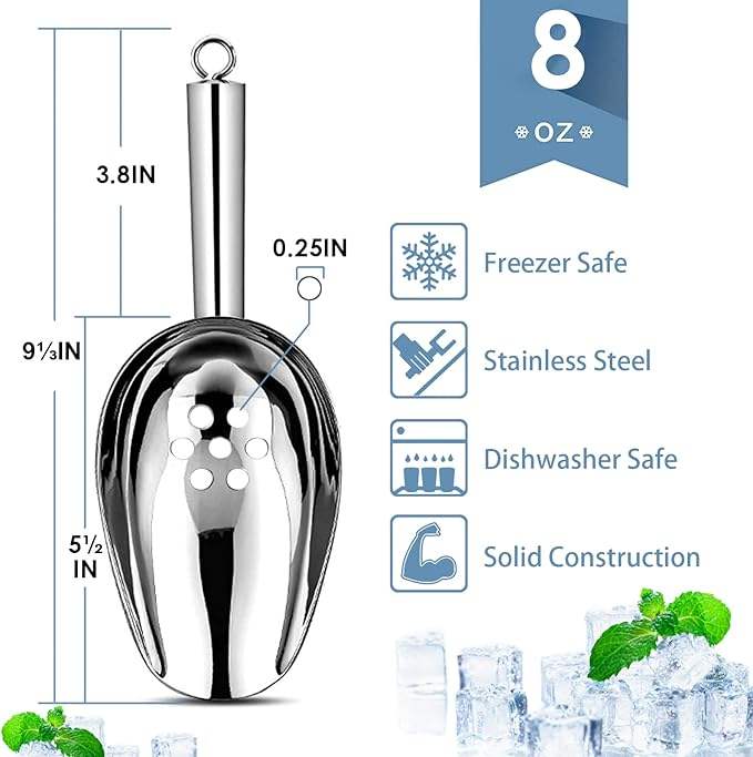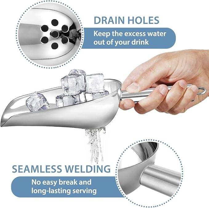 ที่ตักน้ำแข็งโลหะ ที่ตักสแตนเลสแบบหนาสำหรับน้ำแข็ง น้ำตาล แป้ง และใช้ในครัว ทนทาน ดีไซน์ป้องกันสนิม