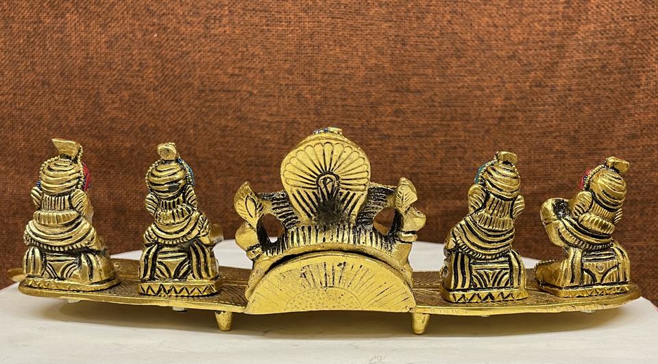 โลหะไอดอลพระพิฆเนศบนใบตอง: ชุด5พระพิฆเนศเล่นเพลงศักดิ์สิทธิ์สำหรับทางเข้าบ้านตกแต่งของขวัญแต่งงาน
