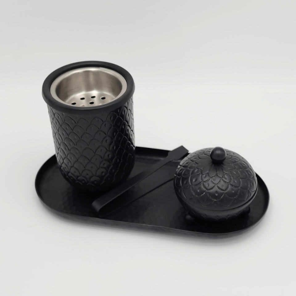 ชุดเตาเผาเครื่องหอมโลหะ ลายสลักด้วยมือ พร้อมฝาถ้วยสแตนเลสและถาดลายตอก สำหรับการทำสมาธิที่บ้านและอโรมาเธอราพี