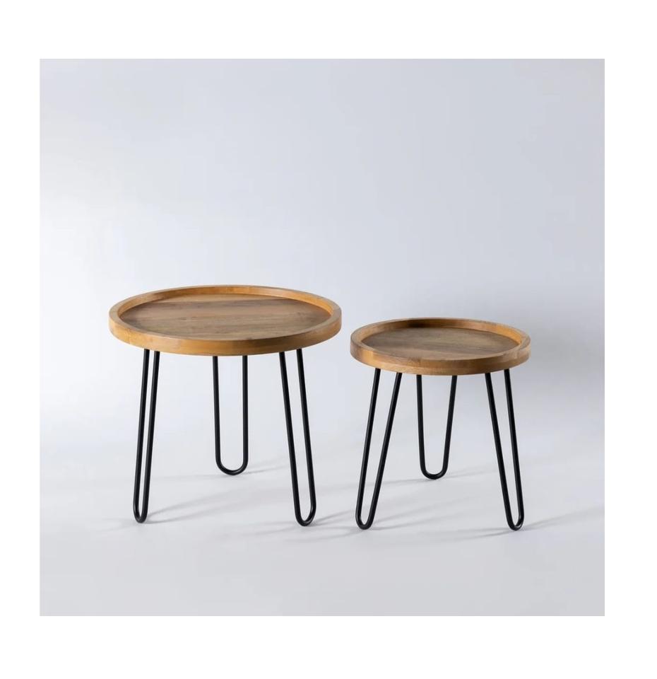 ฐานเหล็กโลหะพร้อมท็อปไม้โต๊ะข้างคาเฟ่ตกแต่งบ้านและเฟอร์นิเจอร์โต๊ะกาแฟด้านข้างที่เป็นเอกลักษณ์เคลือบด้วยผงสีดำ