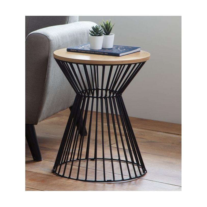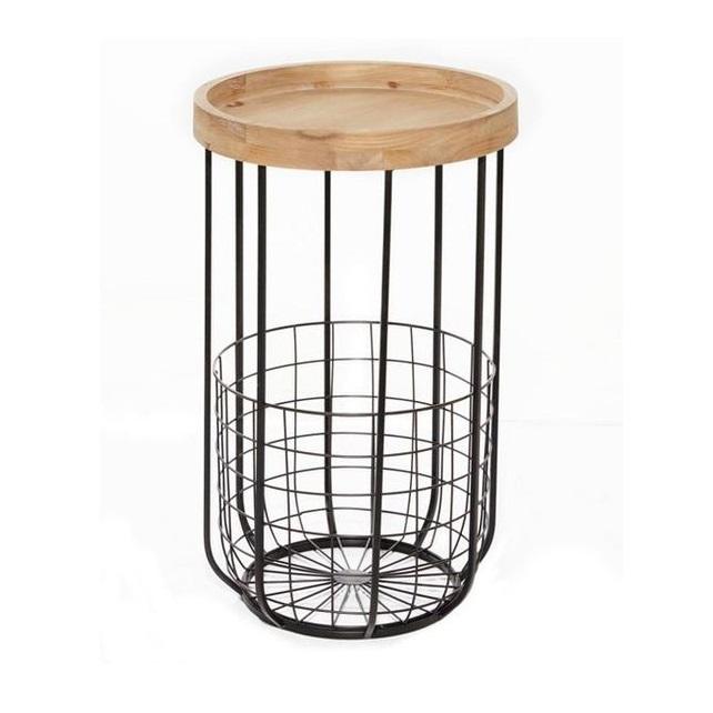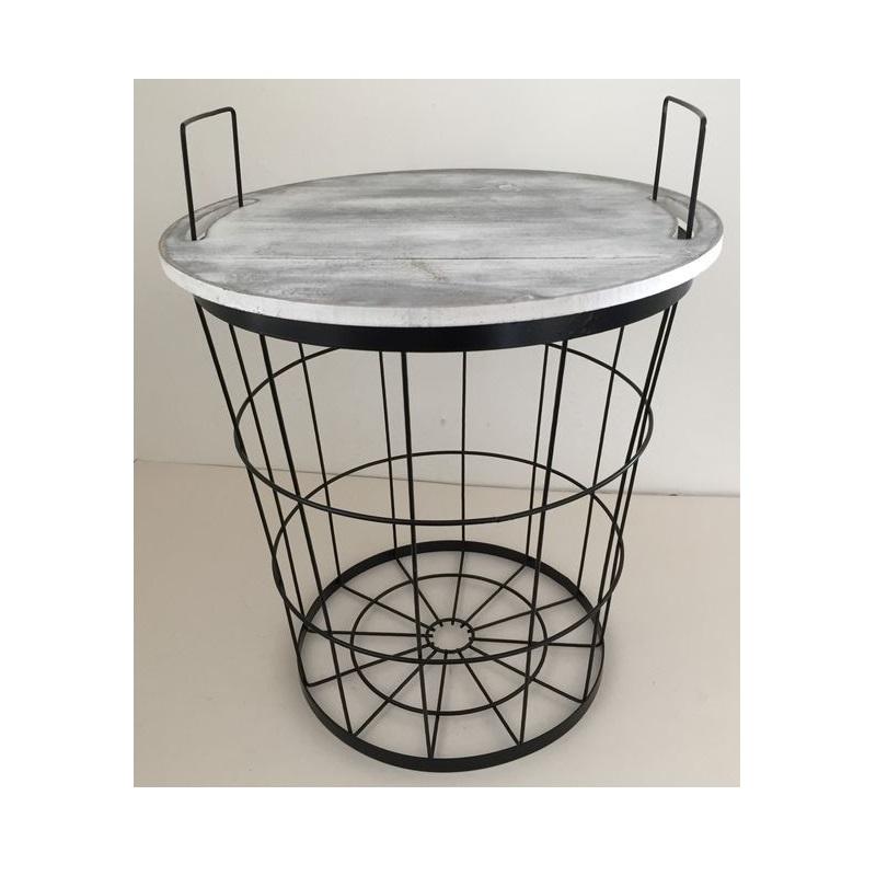 Metal Iron Frame Base Side Stool Side Table Coffee Table Metal Iron Wire Basket Table With Sided Handle Wooden Top