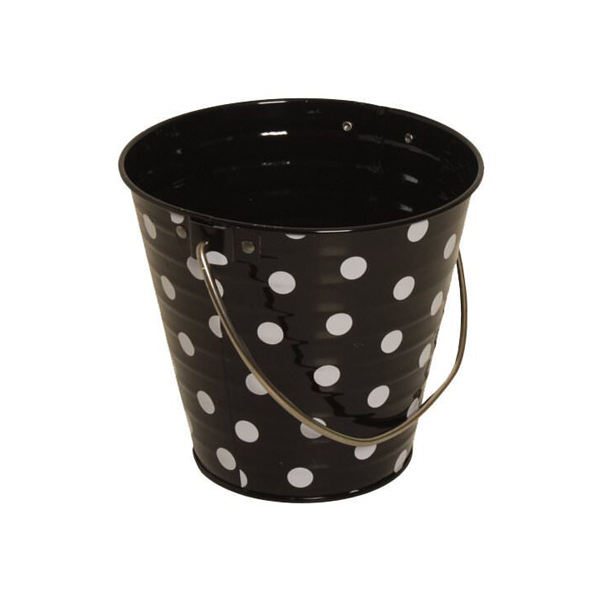ถังโลหะเหล็กสีขาวตกแต่งถังสีดำเครื่องมือทำความสะอาดในครัวเรือนและอุปกรณ์เสริมถังถัง