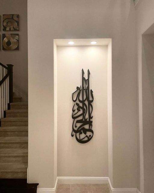 การตกแต่งผนังอิสลามโลหะแสดงให้เห็นถึงการตีความที่ทันสมัยของการประดิษฐ์ตัวอักษรอาหรับคลาสสิกและรูปแบบอิสลาม