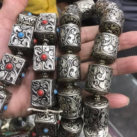 ลูกปัดเครื่องประดับโลหะทิเบตสีขาว