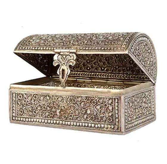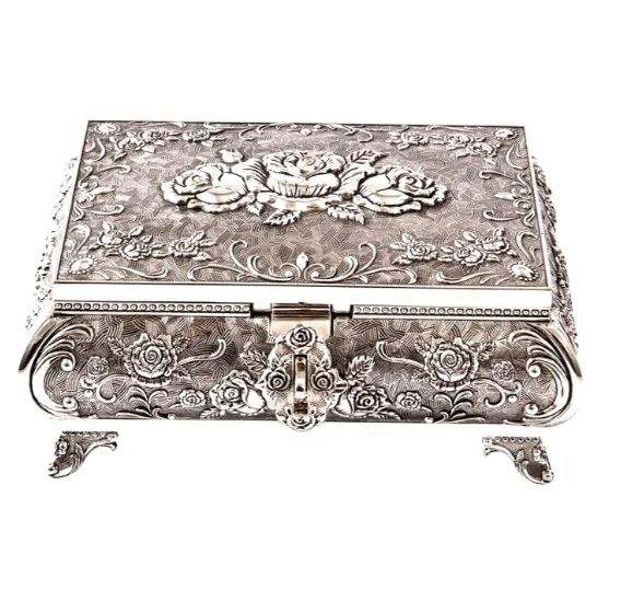 กล่องจัดระเบียบเครื่องประดับโลหะกล่องเก็บเครื่องประดับหีบสมบัติกล่องตกแต่งเครื่องประดับเงินโบราณ