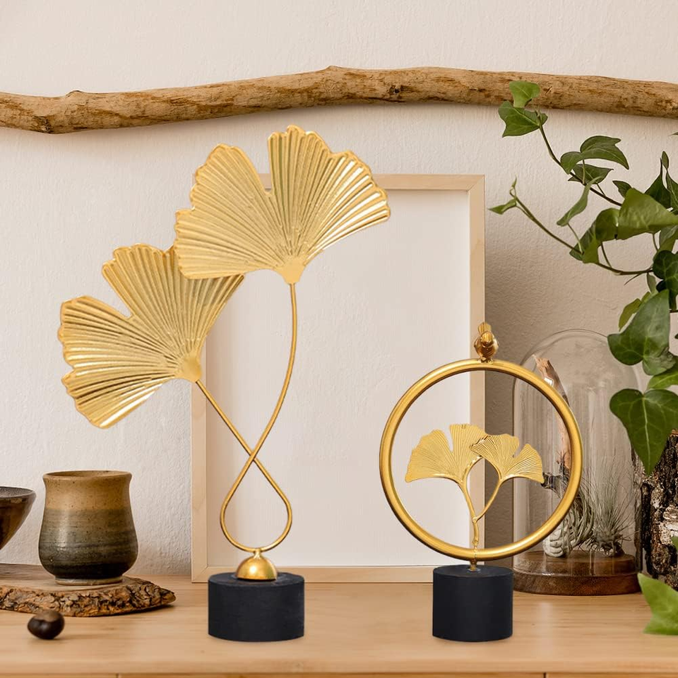 รูปใบไม้โลหะสำหรับตกแต่งที่ทันสมัยรูปปั้นใบแปะก๊วยสำหรับตกแต่งห้องนั่งเล่น