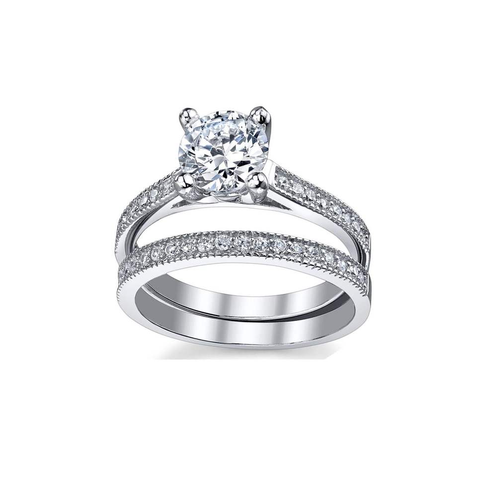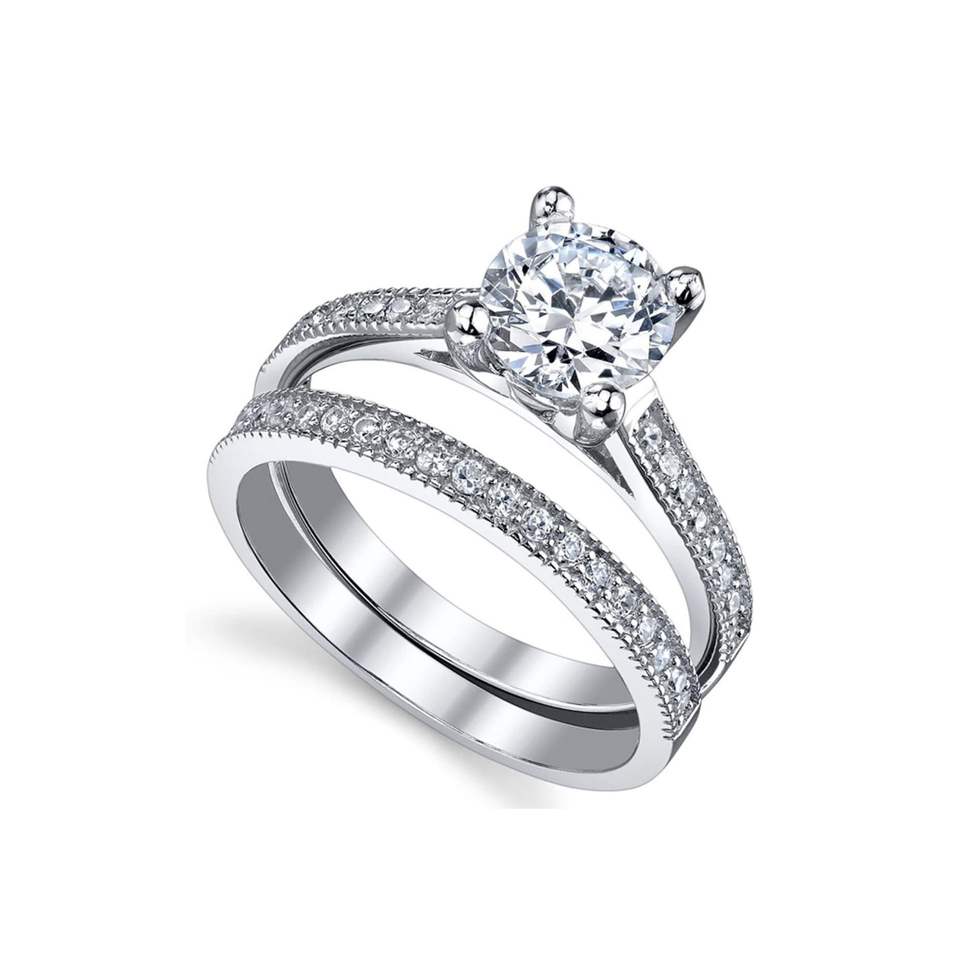 ชุดแหวนแต่งงานและหมั้นสำหรับผู้หญิง Metal Masters เงินแท้ 925 สไตล์น่ารัก ผลิตในสหรัฐอเมริกา ประดับด้วยโมอิสซาไนต์